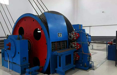 JKMD型多繩摩擦式提升機采用低速電動機時可不用減速器,電動機直接與卷筒主軸相連,或?qū)㈦妱訖C轉(zhuǎn)子裝在卷筒主軸的末端。傳動功率大時,可采用2臺或4臺電動機同時驅(qū)動。一臺提升機的總功率已達到11600千瓦。制動系統(tǒng)是保證提升機安全運行的重要裝置。遇緊急情況時,制動系統(tǒng)應(yīng)通過可調(diào)節(jié)制動力矩的液壓系統(tǒng)產(chǎn)生兩級安全制動,以保證提升機及時停車又不生產(chǎn)制動過猛現(xiàn)象。交流電動機驅(qū)動的提升機。其制動系統(tǒng)還要具有靈敏的制動力矩可能性能,以準確控制提升機在臨近通車點時的運行速度。